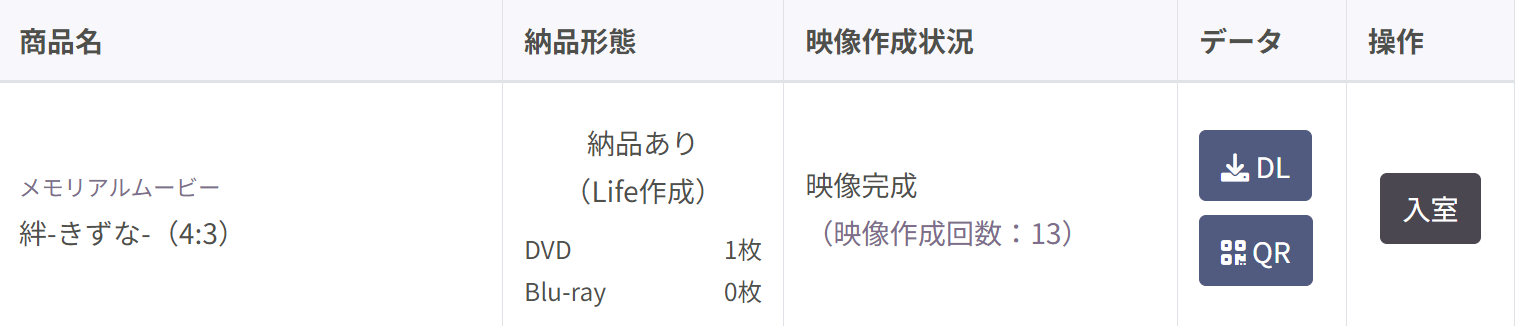 ② 映像作成後、ムービー情報の「データ」欄にQRコードのダウンロードボタンが表示されます。